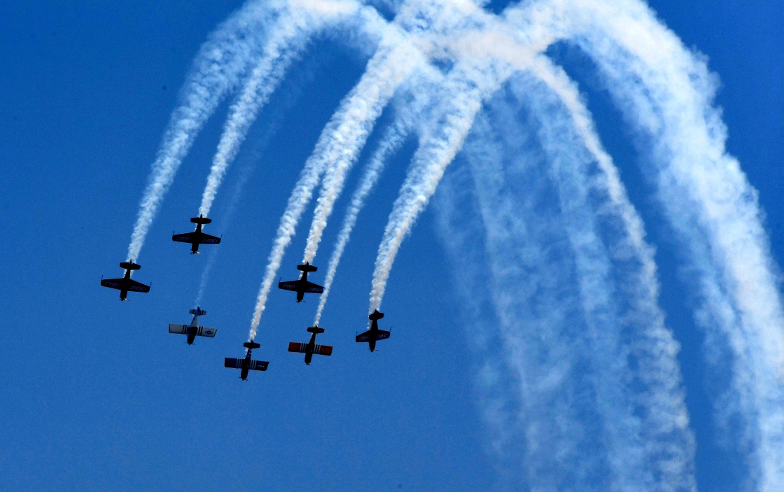 4月27日,特技飞行队在进行空中飞行表演。新华社记者