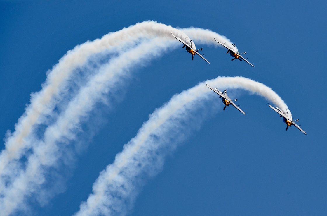 4月27日,特技飞行队在进行空中飞行表演。新华社记者
