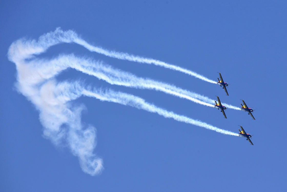 4月27日,特技飞行队在进行空中飞行表演。新华社记者