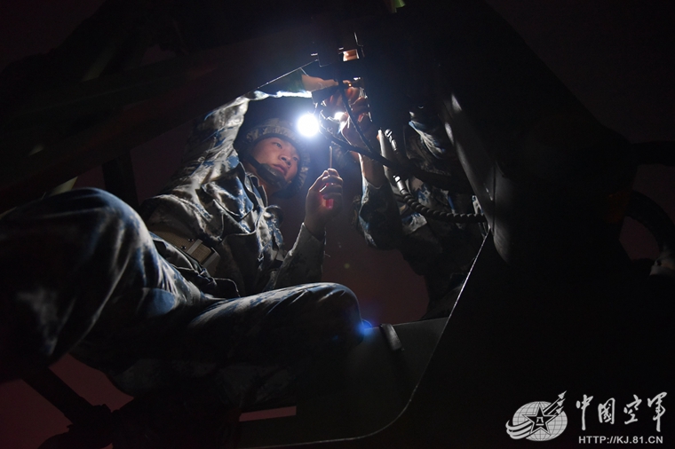 雷达技师王东夜间调试雷达。