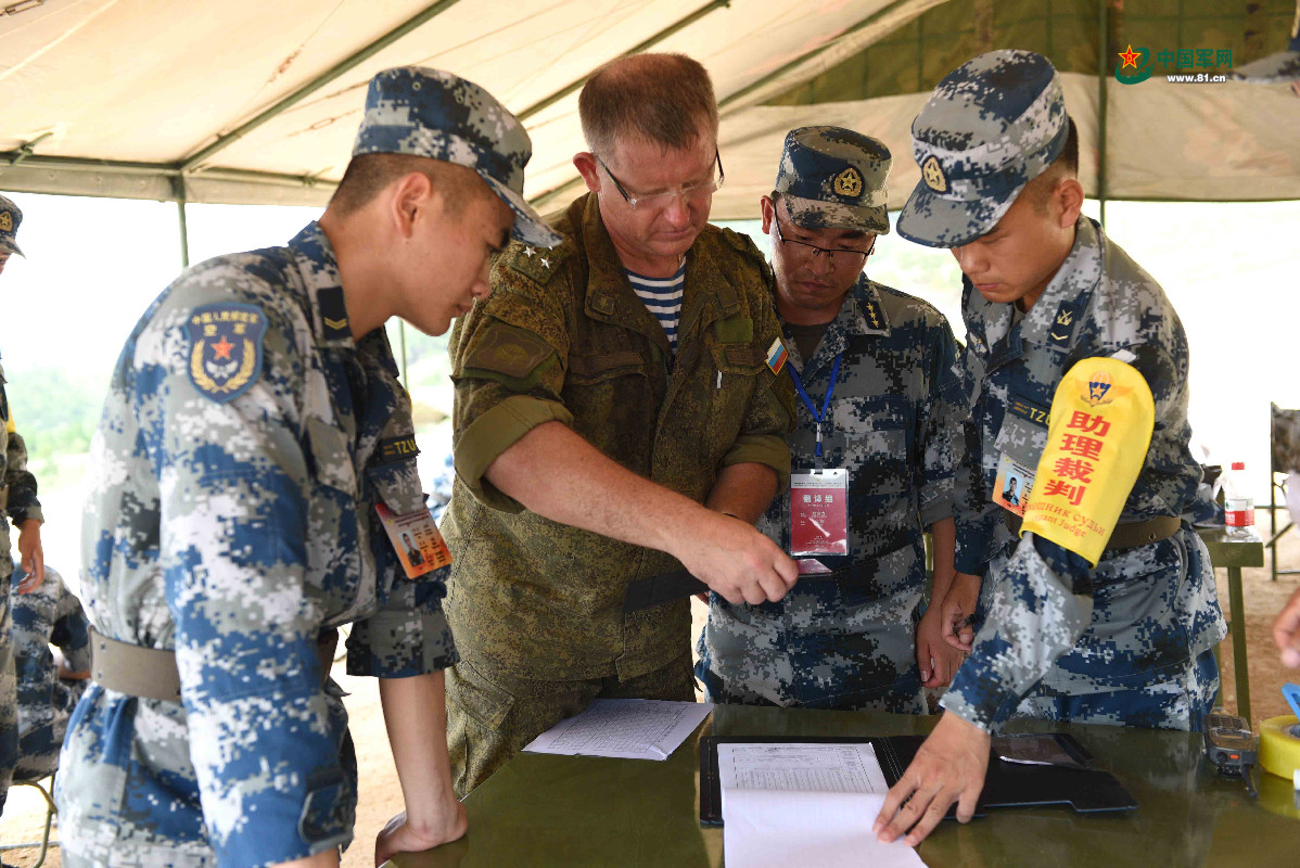 中俄裁判正在核对比赛成绩