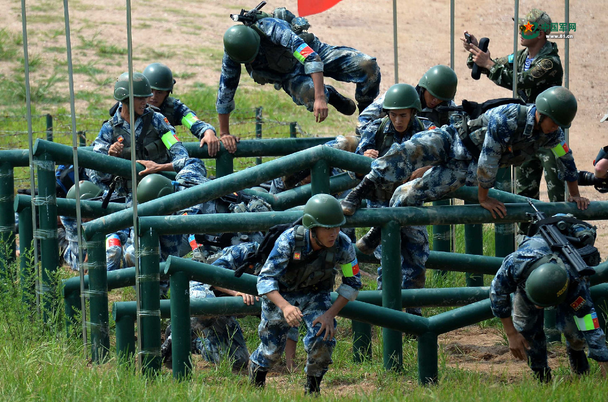 中国队员穿越障碍