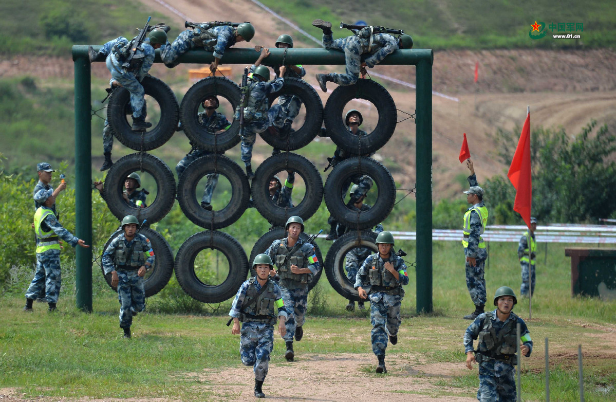 中国队员穿越障碍