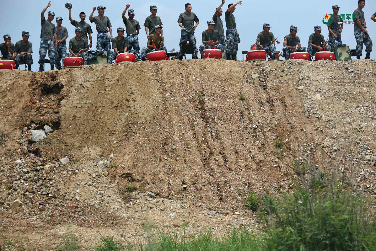 空降兵官兵在为参赛队员呐喊助威