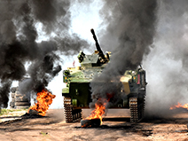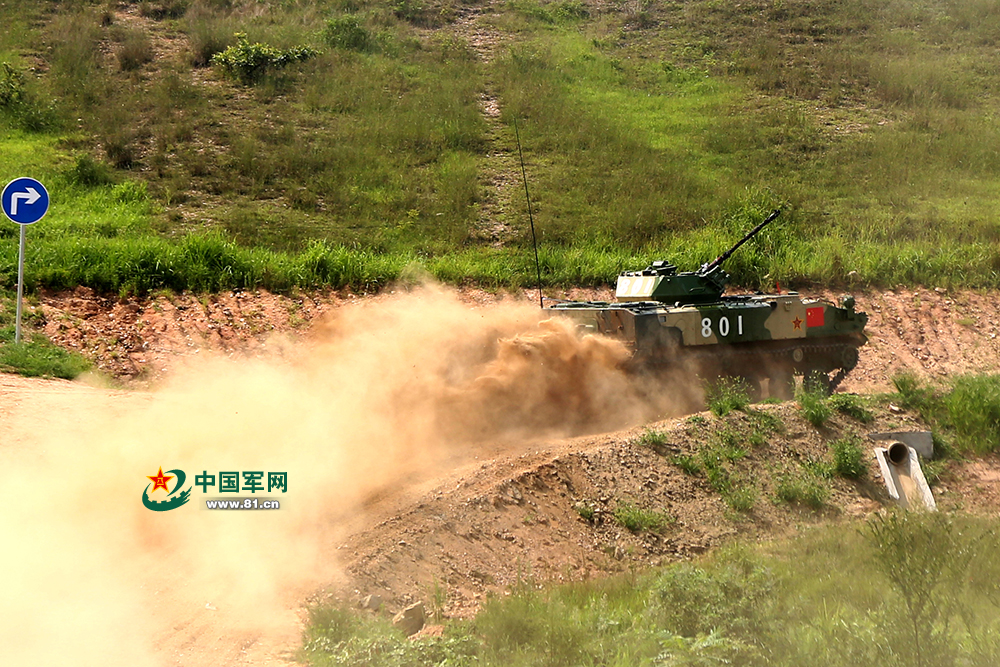 飞驰、闪转、腾挪……801车组沿山野赛道一路闯关过碍,进入射击阵位,现场的气氛几乎凝固。