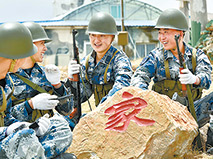 兵把理想和情怀刻进石头,石头见证着兵的坚韧与成长。一轮轮四季变换更迭,一茬茬士兵来来回回,石头如兵列阵,兵歌铿锵嘹亮。兵、石与阵地融为一体,在狂风暴雪、低压低氧的砥砺中更加坚强。