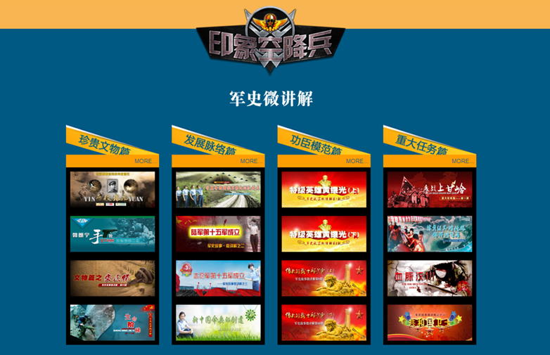 他们依托网络资源,开设“英雄血脉、骁勇天兵”专题网页,设置解码空降兵、印象空降兵、我是空降兵等栏目,全景展现空降兵成立发展的辉煌历程,全面解析空降兵英雄精神;并采取专题辅导、集中学习、讨论交流等形式深入开展空降兵军史学习和优良传统教育。