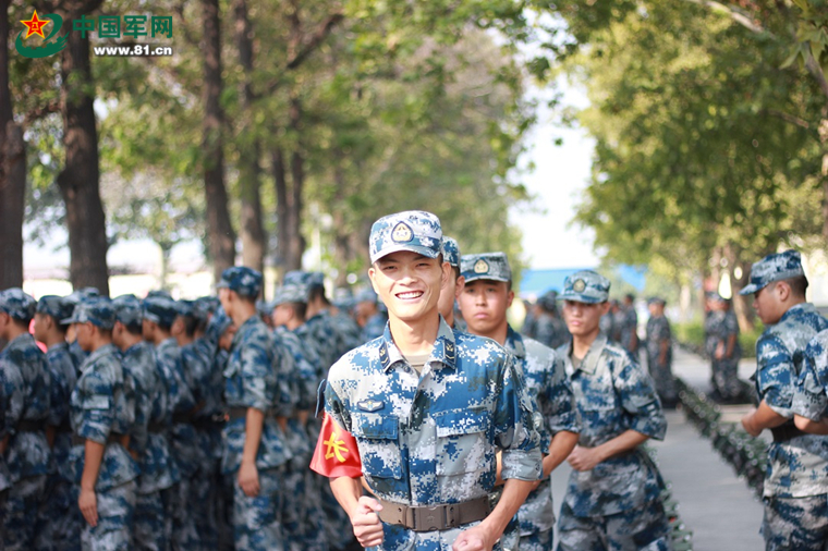 今天内务评比得了第一,班长脸上露出了开心的笑容。