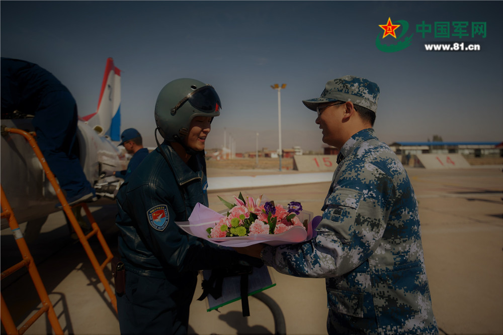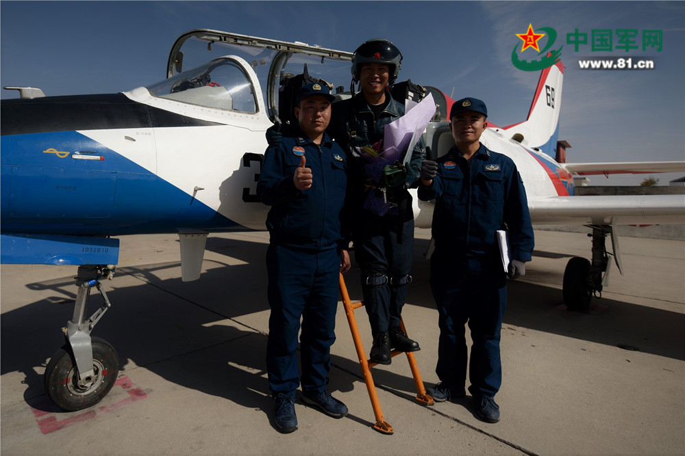 该旅旅长介绍:“党的十九大闭幕之际,学员们完成了高教机首次特技单飞。这是他们经过两个多月的刻苦学习、充分准备换来的成果,也是他们成为战斗机飞行员的重要一步,他们用飞行学员独特的方式向党的十九大献礼致意。”