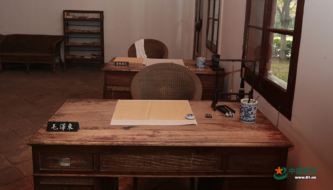 中央农民运动讲习所旧址内毛泽东简朴的办公设施令在场官兵深受触动。 李明摄