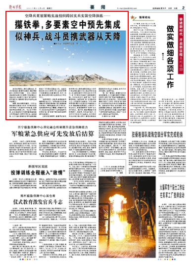 “轰!轰!”着陆后,破障攻击队快速完成集结,火力支援队随即利用随队空投的火器对“敌”阵地实施覆盖射击,掩护主攻分队发起冲击。在各作战要素通力协作下,官兵一举攻克“敌”指挥所,达成预定作战目标后迅速撤离战场。该旅领导介绍说,此次演练,各作战要素练远程机动、练战场感知、练战术协同、练快收快打快撤,检验和锤炼了多种空降作战新战法,树起了“仗怎么打、兵就怎么练”的风向标。