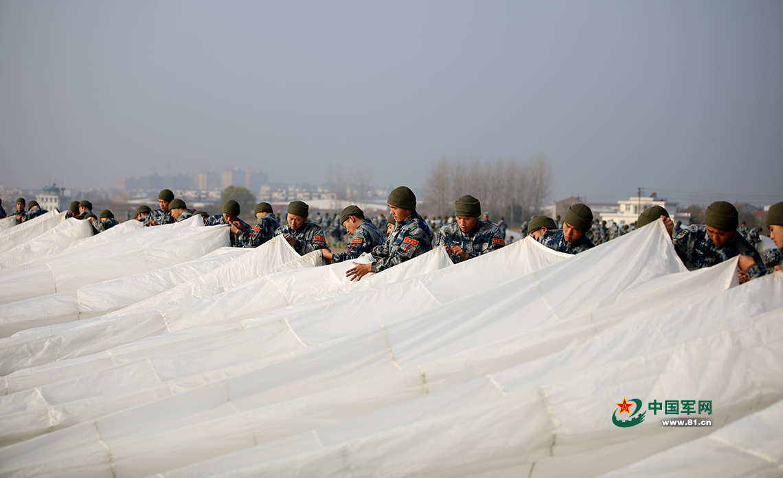 12月7日,空降兵某旅组织新兵进行折叠降落伞训练。据了解,今年是空降兵部队改革后首次组织新兵跳伞训练,该旅着眼新体制、新矛盾,探索空降训练新方法、新模式,按照“严于大纲、高于大纲”的要求,把精练细训落实到跳伞训练每一个环节,为年度新兵跳伞训练打下坚实基础。
