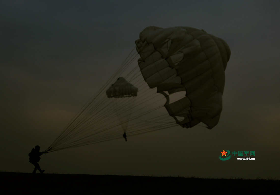 向茫茫夜空进发!空降兵某旅组织千余新兵首次夜间跳伞