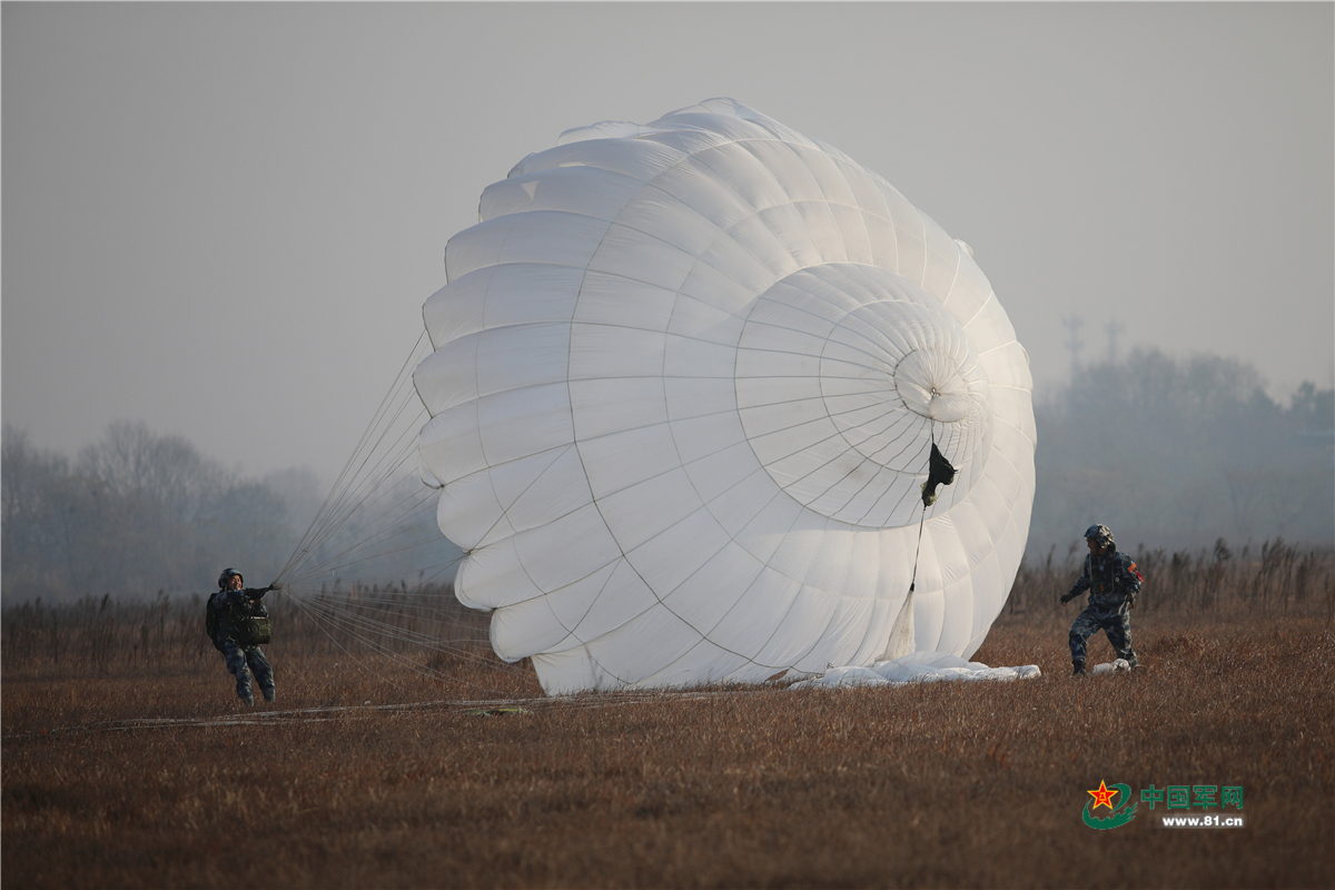 跳伞员在着陆后排除拖拉。戚勇强 摄