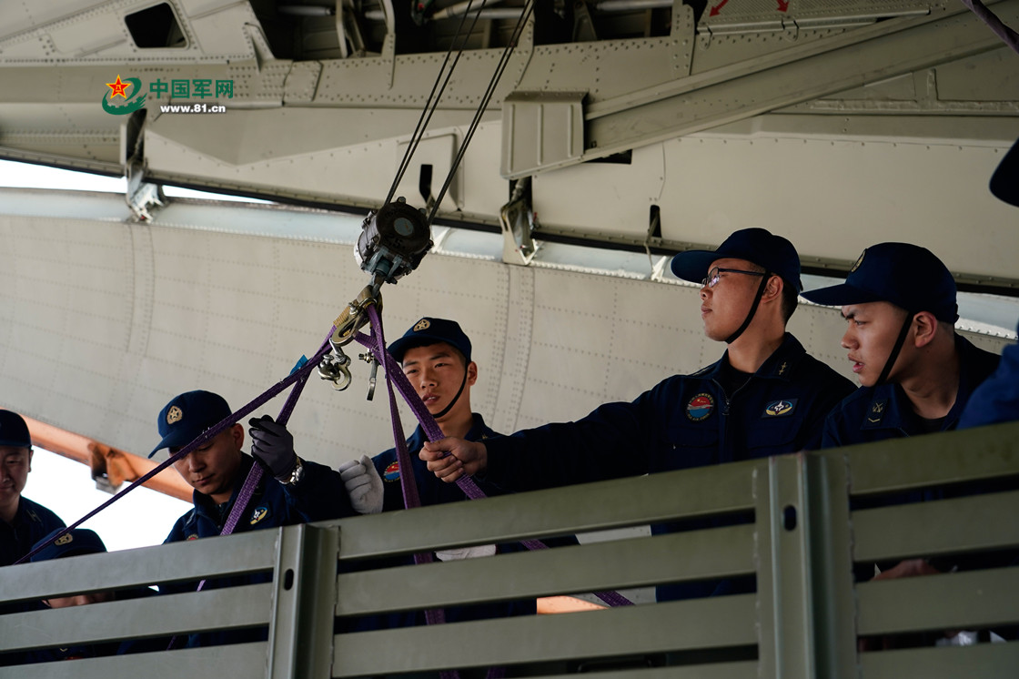 驻训机务官兵紧张装载中。