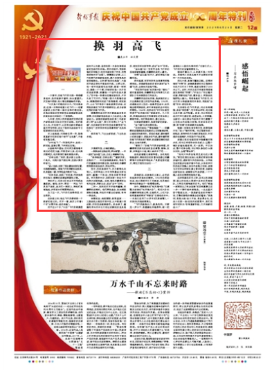 在庆祝建党百年之际,这支从抗美援朝、国土防空炮火硝烟中走来的英雄部队,又将目光瞄准建军百年。他们“锻造一流制空尖刀突击劲旅”的目标愿景正在一步一个脚印地向前推进。一名名蓝天骄子整装出发,一架架新型战机呼啸升空,引擎的轰鸣仿佛是出征的誓言:“我是剑,我是火焰/战斗开始,我奋勇当先,在战斗的第一线/在胜利的凯歌中,我们没有时间欢乐/号角重新吹起,又开始新的战斗!”