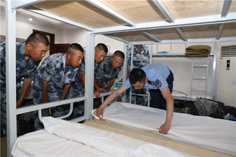 “我来拿,我来拿!”新兵刚到连队门口,班长们就积极热情地接过行李,有条不紊地引导新兵安顿落脚。为了让他们尽快适应新环境,班长骨干不仅耐心细致地讲解内务设置规范,还手把手地帮带恢复整理内务,让新兵们感受到了“下连如归家”的温馨感觉。