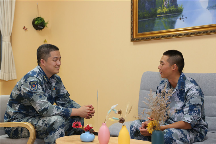 “连队就是你们的家,有什么困难随时反映,战友们都会尽力提供帮助的。”该部战勤连指导员丁晟杰亲切地对新兵们说道。一次敞开心扉的交流,了解新兵的思想动态;一次心灵的碰撞,拉近彼此之间的距离,引导新兵安心服役。