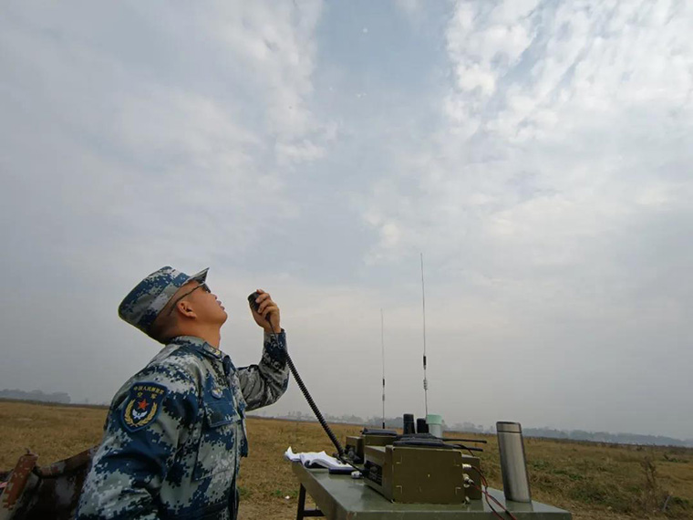 空降引导是一个长期在风吹、日晒、雨淋、荒野等各种艰苦复杂条件下工作的专业,八月,空降兵某旅正在组织春季入伍新兵跳伞训练,电台旁,他顶着烈日,手持话筒,镇定自若。