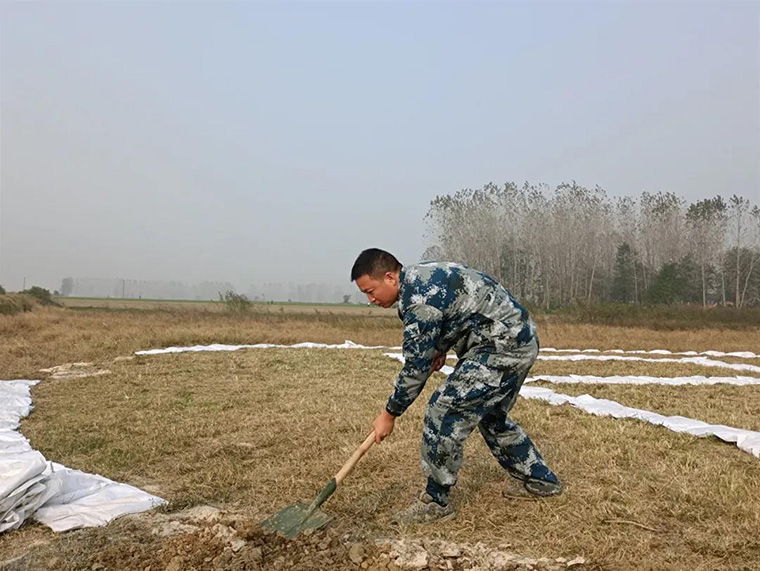 一次跳伞训练中,一名新兵着陆在田埂上受伤骨折,受伤的样子深深的触动了程聪的心灵,一天繁重的引导任务结束后,他带领着连队战士们手上拿着的,已经从话筒换成了锄头、铁锹,继续在空降场挥汗如雨,边走边寻找坑洼、田埂。