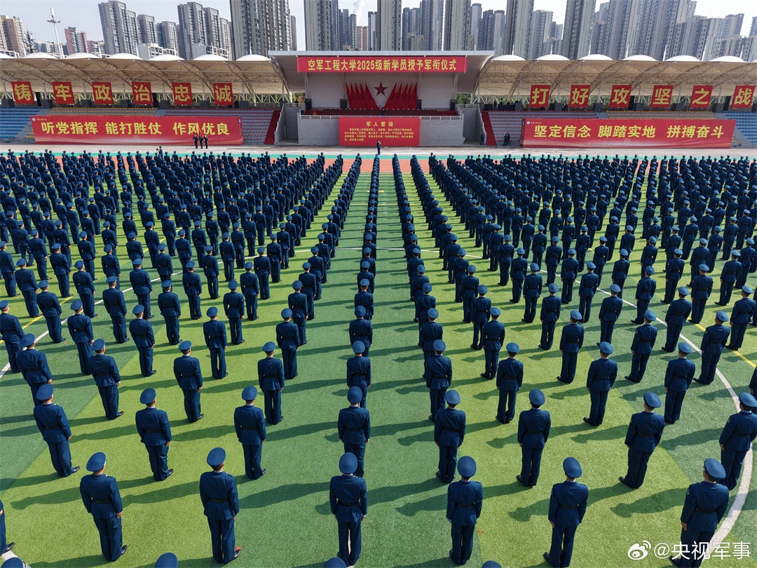 近日,空军工程大学中心校区大操场上,2025级新学员授予军衔仪式庄严举行。经过两个多月的淬火磨砺,顺利完成新训任务的学员们佩戴上了象征责任与荣光的“一道杠”肩章,正式开启军旅生涯新阶段。为新战友点赞加油!