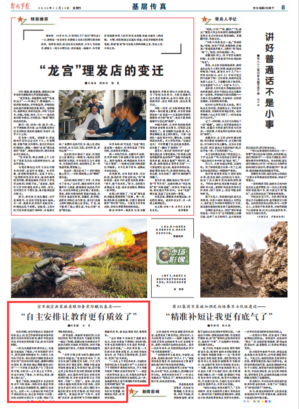 “这些举措不仅减轻了基层官兵压力,政治教员也不用再忙着赶时间,有更充足时间精力来丰富教育内容,提升备课质量。”一次教育课后,一大队肖教导员告诉笔者,此次授课他准备充分,台下官兵们精神饱满,互动积极,收到了应有质效。