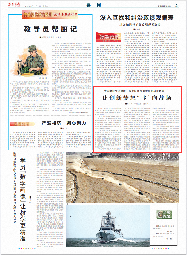 不久前,该研究所推出一套能够帮助部队建立“训练数据—战术战法—指挥决策”闭环链路的数字化系统。空军航空兵某旅试用后反馈:“这才是我们真正需要的工具。”