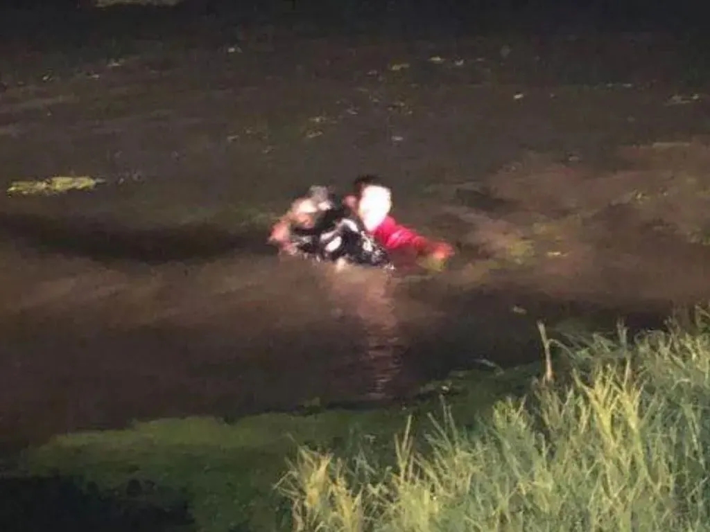 当时,姚鹏和伯母周淑梅正探亲返回,驾车途中经过桥面。看到一辆红色三轮车歪倒在水中,听到水中有人喊“救命”,姚鹏让伯母立即停车,毫不犹豫跳入河中。