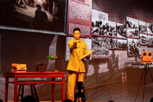 当灯光锁定到舞台左侧的档案馆,讲述人宋世良亮相,他用饱含真情的话语,将抗美援朝的故事娓娓道来。