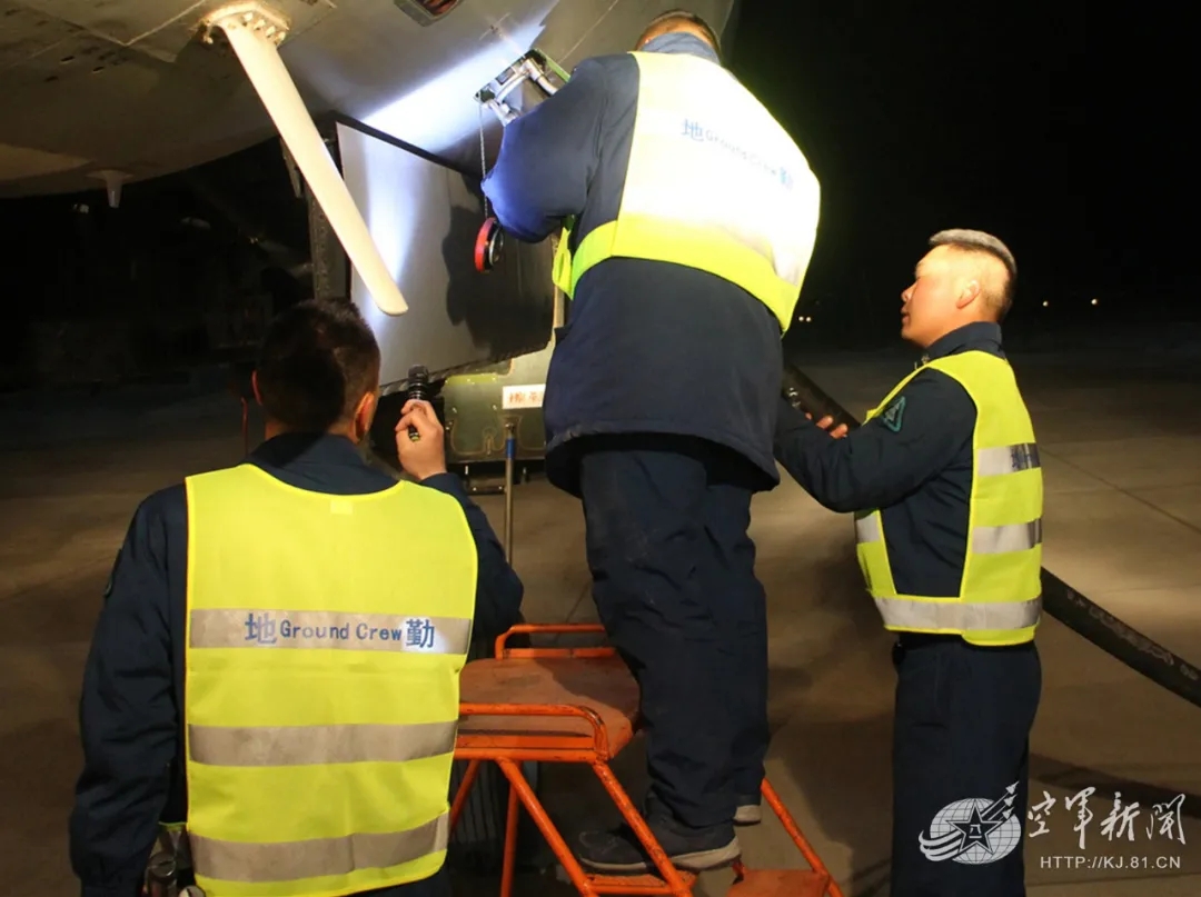 凌晨1时50分,机群完成预定训练课目后,千里奔袭降落某陌生机场,机务人员迅速对战机进行充、添、加、挂,飞行人员又马不停蹄地为下一场战斗再次准备。