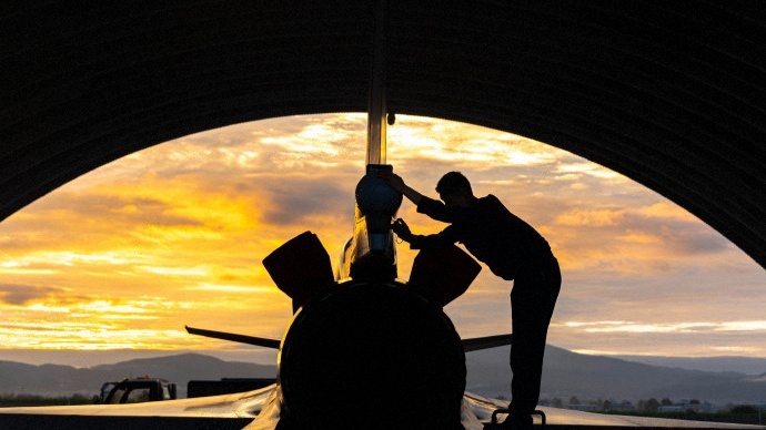 近日,南部战区空军某部组织跨昼夜飞行训练。该部设置超视距空战、对地打击、低空突防等多个高难度课目,从日出时分战至月上枝头,全面提高部队全时域作战水平。