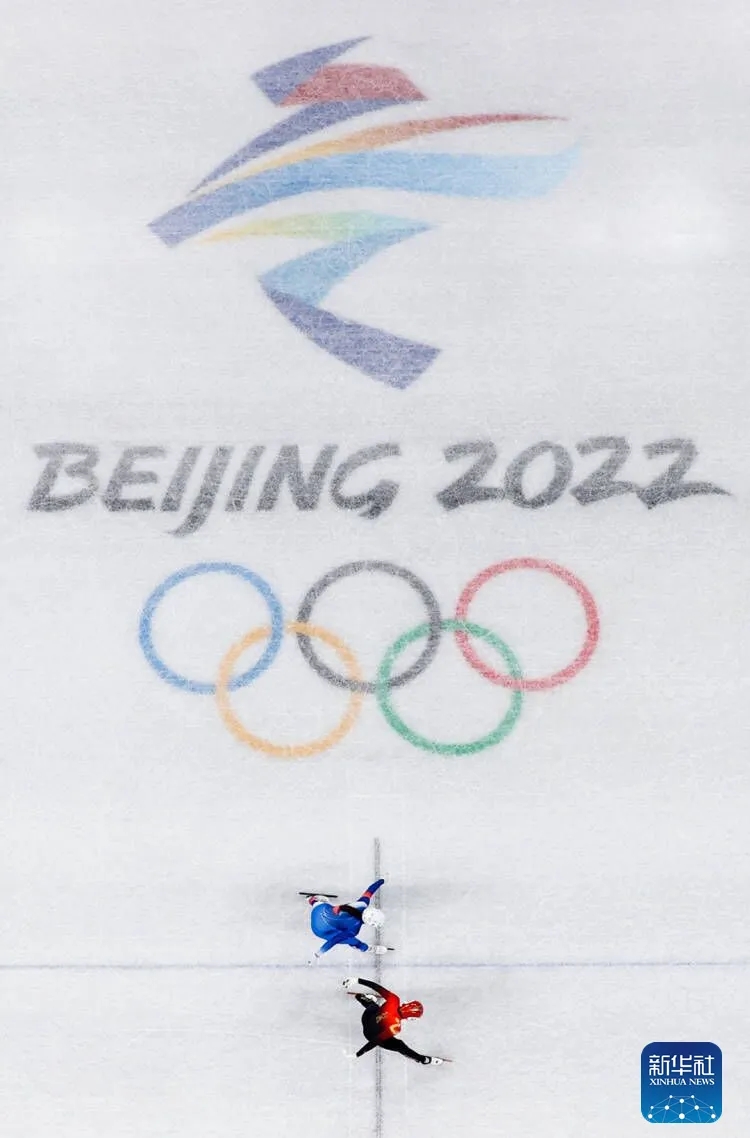 ▲2月5日,中国队选手范可新(下)在比赛中冲线。新华社记者 徐子鉴 摄