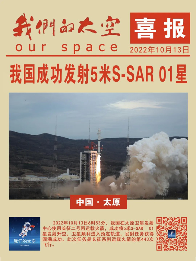 2022年10月13日6时53分,我国在太原卫星发射中心使用长征二号丙运载火箭,成功将5米S-SAR01星发射升空,卫星顺利进入预定轨道,发射任务获得圆满成功。该卫星主要为应急管理、生态环境主体业务提供国产化数据保障,同时,服务于自然资源、水利、农业农村、林业草原、地震等行业。