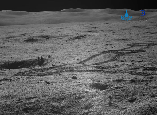 总台央视记者 李宁:可以看到月球的地形地貌坑坑洼洼,路况还是比较差的。这个是玉兔二号已经行驶过的车辙印,它在这个区域进行了一个爬坡,随后它开始进入相对平缓的路段,可以看到非常清晰的车辙印。