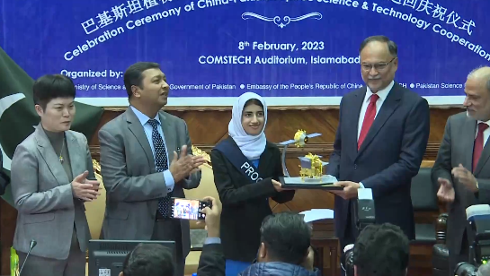 巴基斯坦植物种子从中国空间站成功返回庆祝仪式现场。视频截图