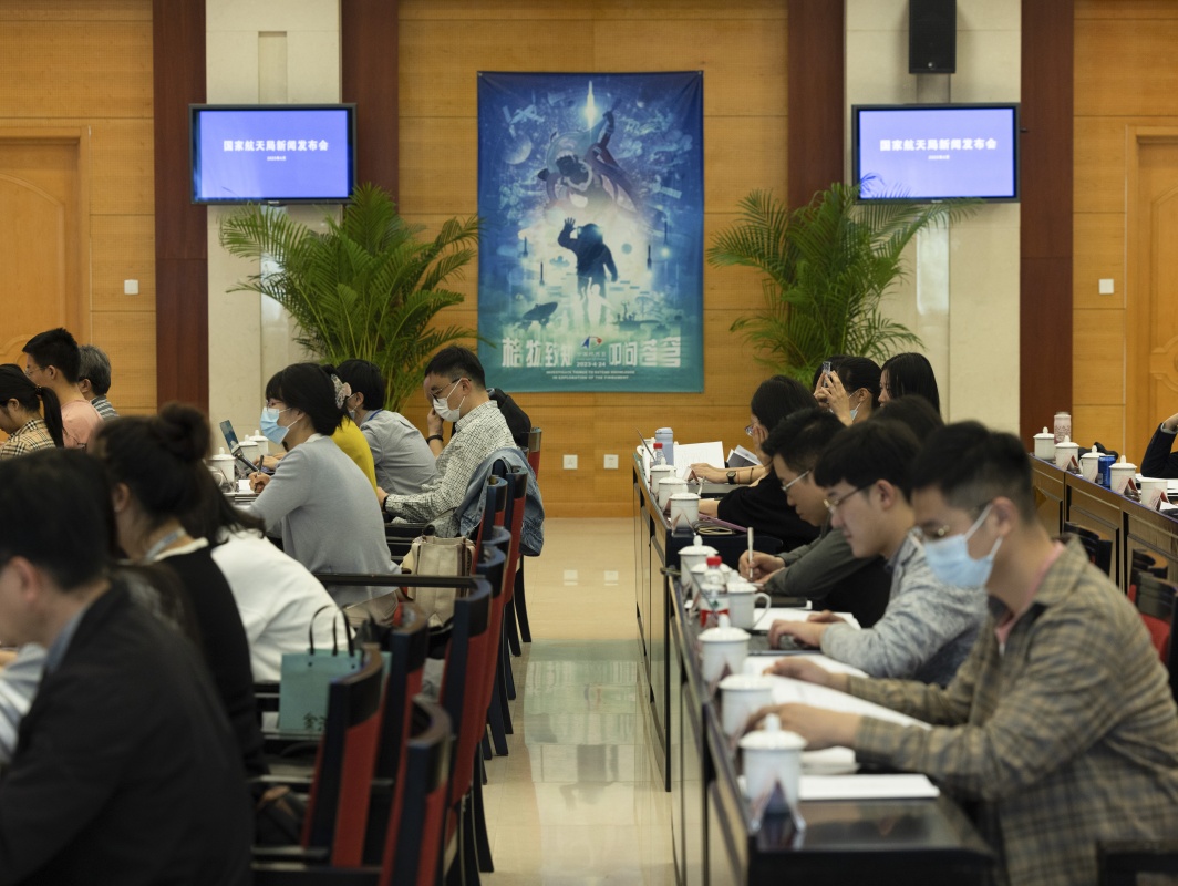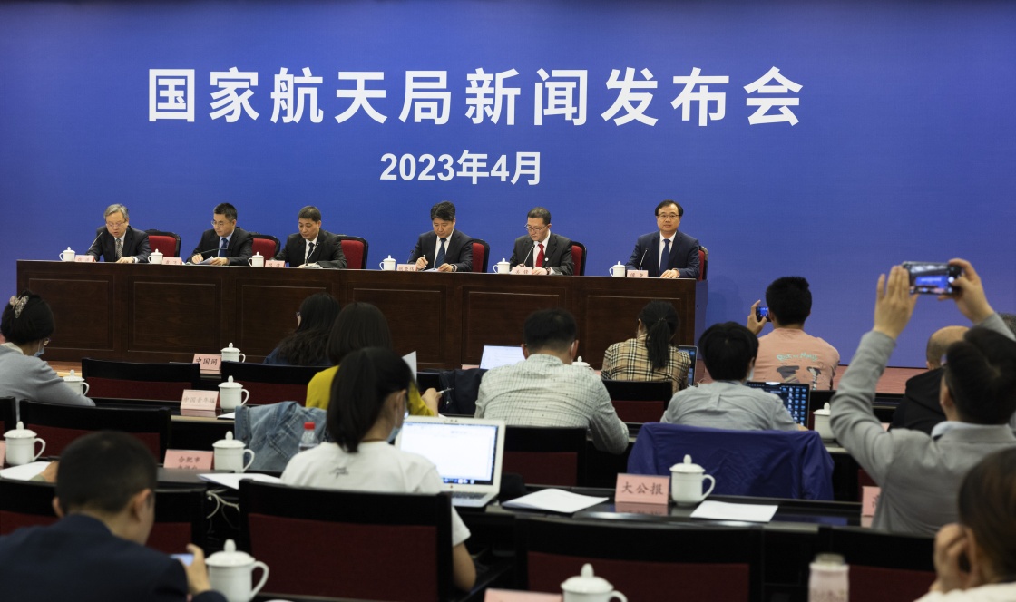4月18日拍摄的2023年中国航天日新闻发布会现场。新华社记者 金立旺 摄