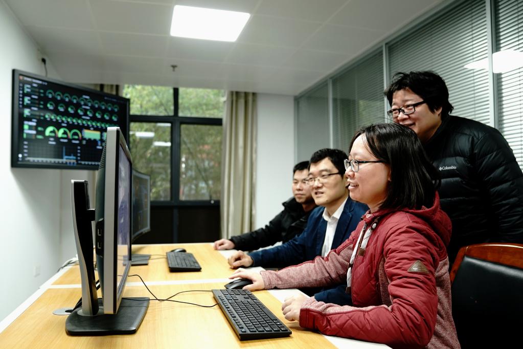 1月27日,中国科学院上海天文台SKA研究团队在SKA区域中心原型机控制室。 新华社记者 张建松 摄