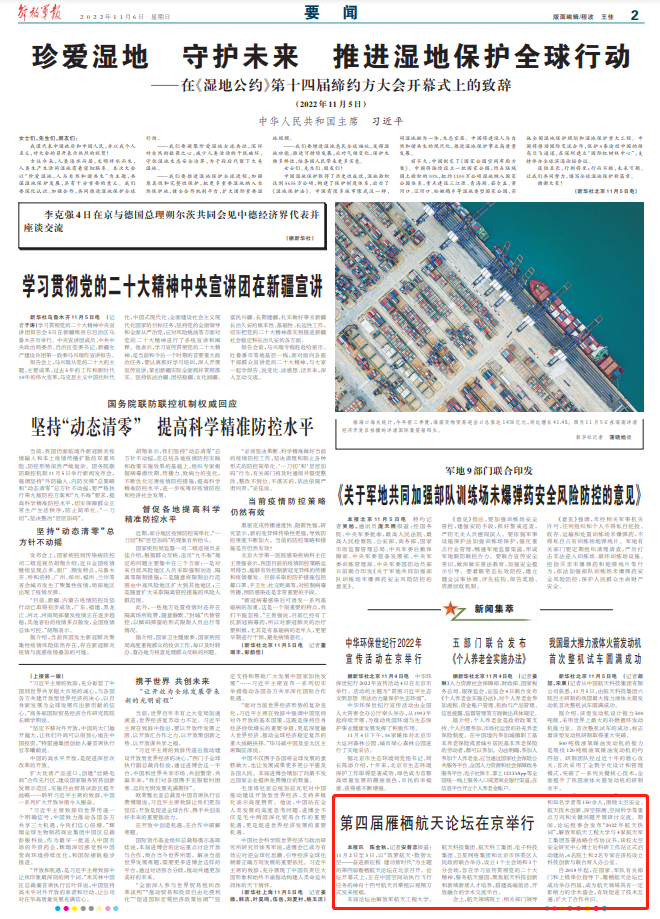 解放军报讯 陈金秋、记者安普忠报道:11月2日至3日,以“筑梦航天·数智太空——奋进新征程 建功新时代”为主题的第四届雁栖航天论坛在北京召开。论坛开幕式上,正在中国空间站执行飞行任务的神舟十四号航天员乘组以视频方式发来祝福。