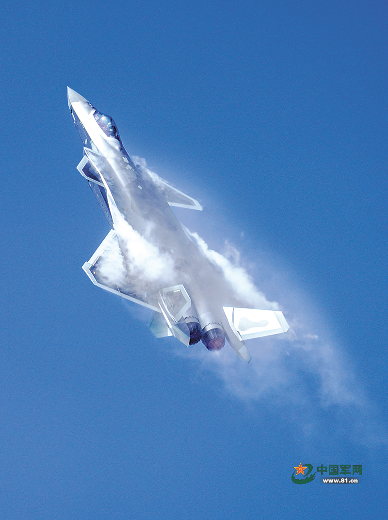 歼-20战机进行飞行表演。解放军报记者 栾 铖摄