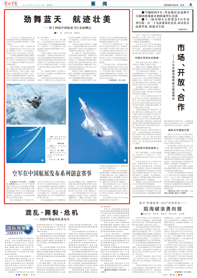 八机钻石队盘旋、双机对冲、六机横滚……表演动作潇洒写意,首次来中国航展参观的广州某中学语文教师闻女士不禁赞叹:“这简直是诗一般的飞行。”