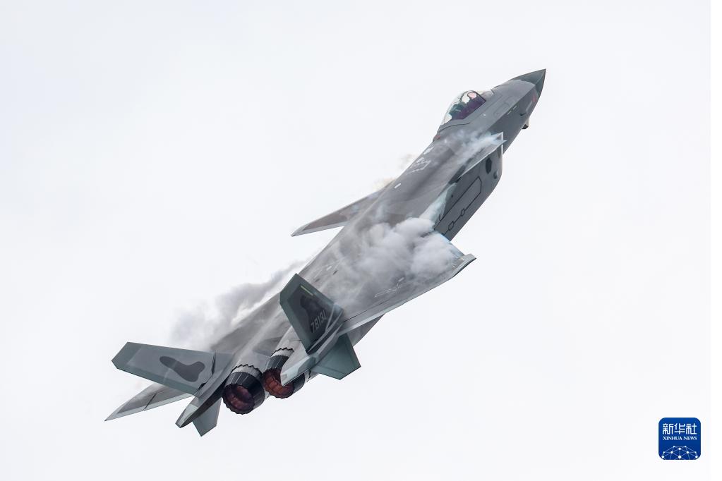 11月11日,歼-20战机在第十四届中国航展上进行飞行展示。新华社发(谭巳成 摄)