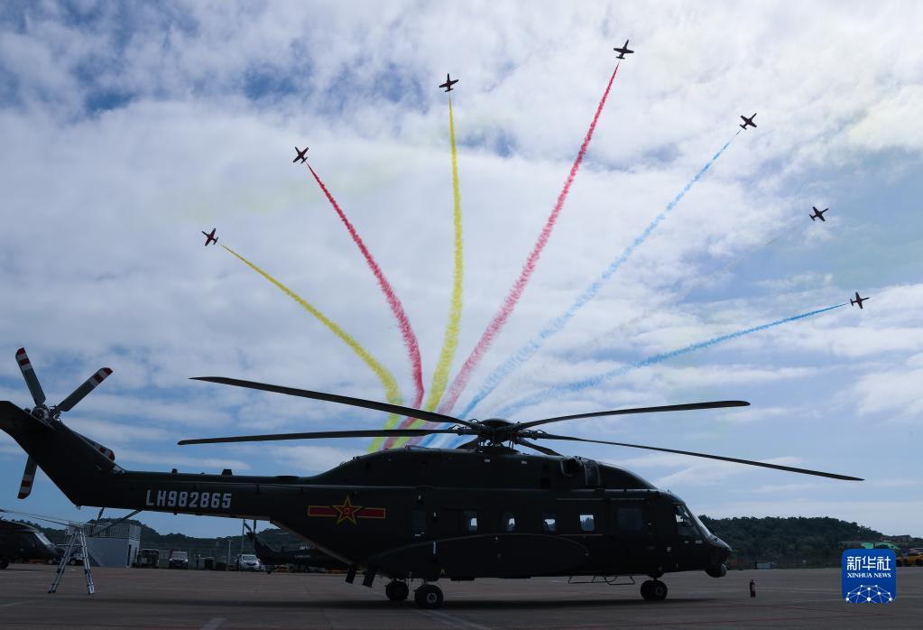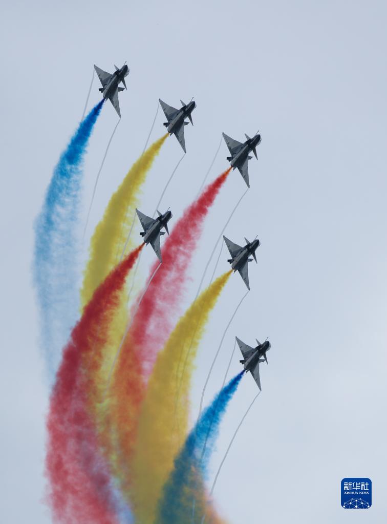 11月11日,中国空军八一飞行表演队在第十四届中国航展上进行飞行表演。新华社发(谭巳成 摄)