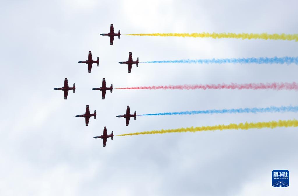 11月11日,中国空军八一飞行表演队在第十四届中国航展上进行飞行表演。新华社记者 张永进 摄
