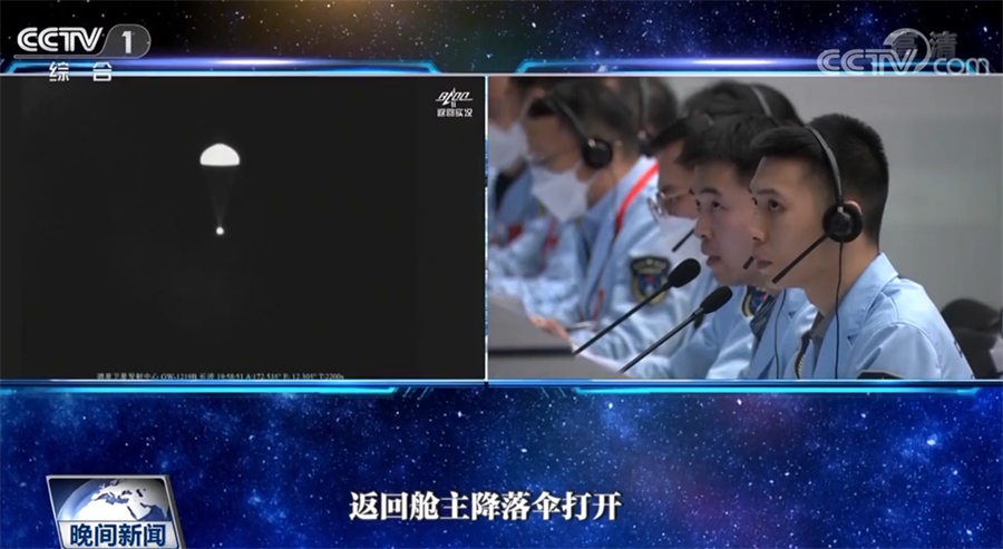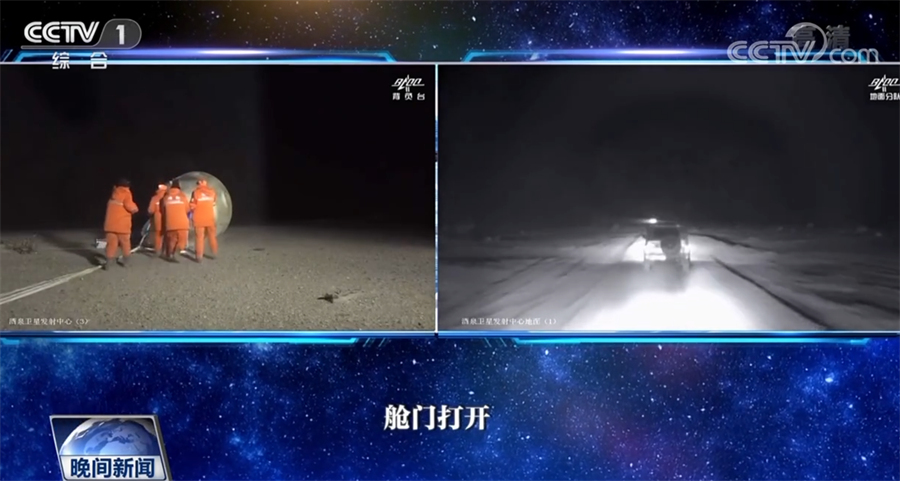 返回舱成功着陆后,担负搜救回收任务的搜救分队及时发现目标并抵达着陆现场。返回舱舱门打开后,医监医保人员确认航天员身体健康。