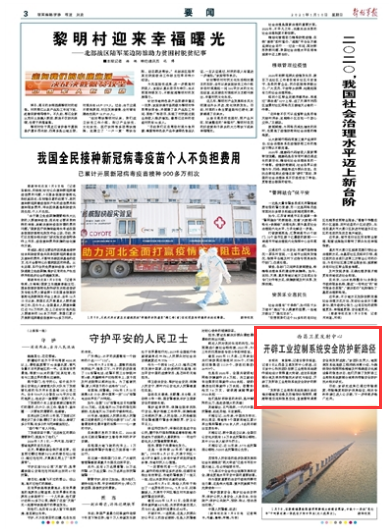 解放军报讯 黄国畅、记者安普忠报道:记者8日从西昌卫星发射中心获悉,近日该中心科技团队创新工业控制系统硬件架构设计取得重大突破,成功实现数据分流及单向传输技术研究与验证,开辟了发射场工业控制系统安全防护的新路径。