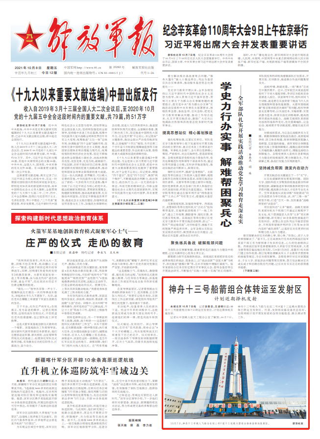 解放军报北京10月7日电 记者安普忠、王凌硕报道:神舟十三号船箭组合体7日转运至发射区,计划近期择机实施发射。