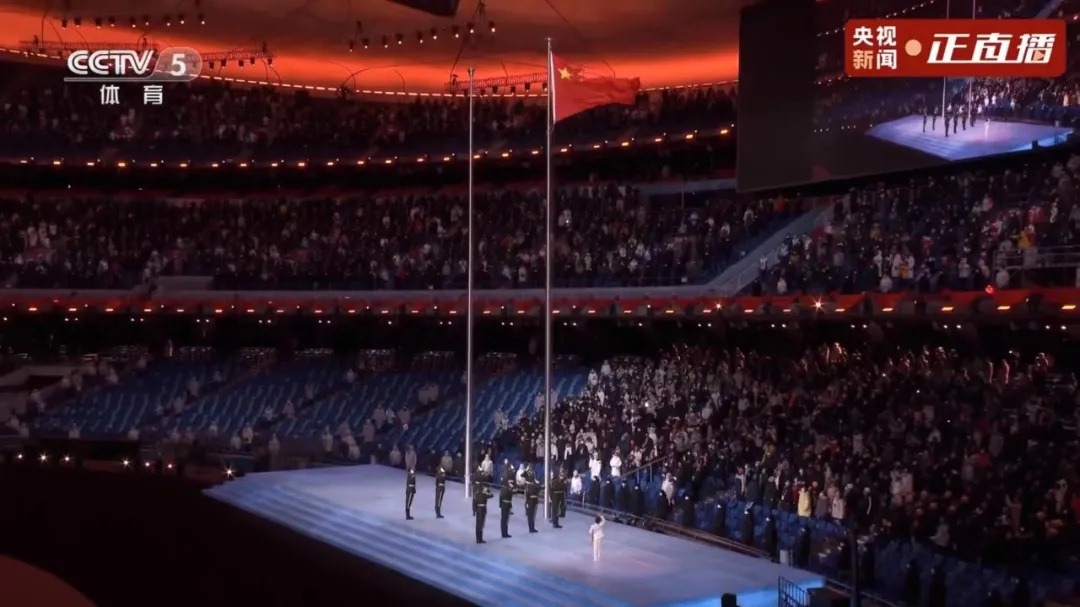 舞台的两侧,高耸的旗杆上旗帜飘扬。这些旗杆的设计工作也由航天人完成。相较于2008年北京夏季奥运会的旗杆,此次冬奥会的旗杆增加了旋转功能,可以更好地适应鸟巢风向的变化,让旗子在任何时刻都可以迎风招展。