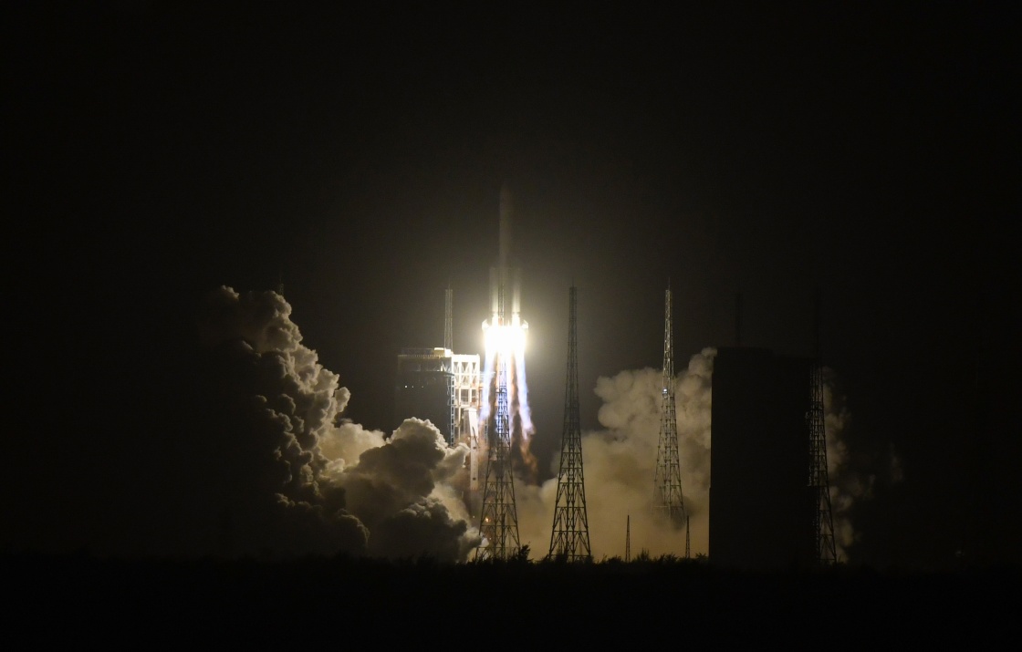 11月24日4时30分,我国在中国文昌航天发射场,用长征五号遥五运载火箭成功发射探月工程嫦娥五号探测器,火箭飞行约2200秒后,顺利将探测器送入预定轨道,开启我国首次地外天体采样返回之旅。这是长征五号遥五运载火箭发射升空。