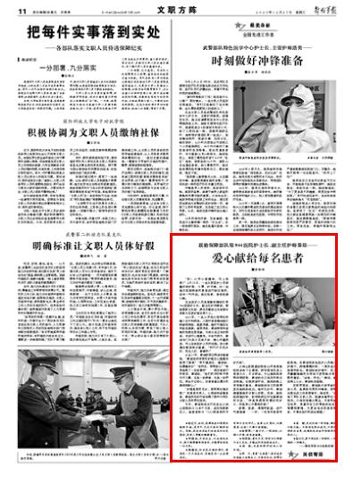 “护理是爱的艺术,爱到深处情自浓!”把患者当亲人,心里始终装着患者,秦琼用实际行动诠释了新时代军队文职人员的责任担当。