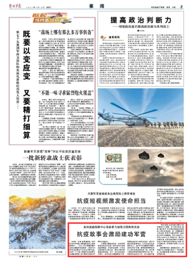 解放军报讯 轩荻、崔寒凝报道:“他们用生命守护希望,用精湛的医术让患者重获新生……”近日,郑州联勤保障中心某部主题教育活动现场,一场别开生面的抗疫故事会引发官兵思想共鸣。该部将一个个感人肺腑的抗疫故事引进主题教育课堂,成为激励官兵建功军营的生动教材。